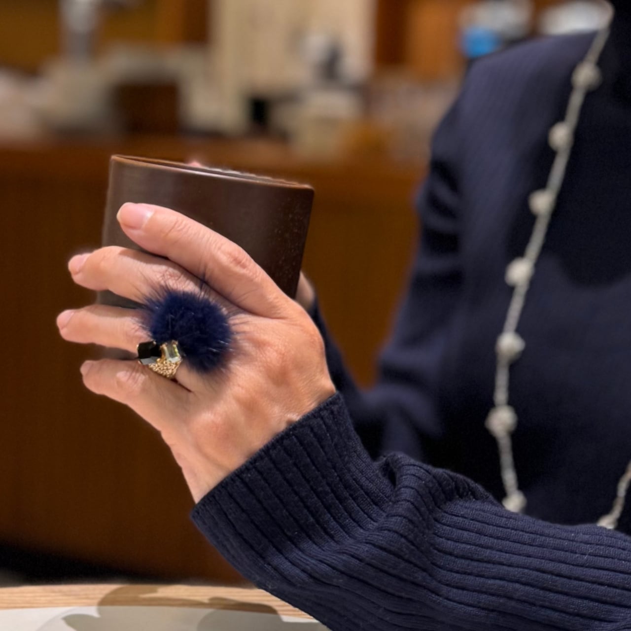 今年の冬は、ネイビーのファー✖️クリスタルをお楽しみください。
