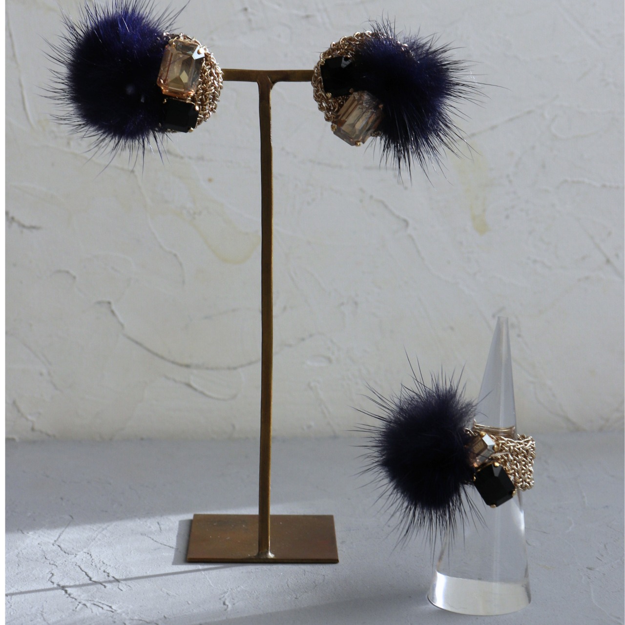 【スペシャルセット】BLUE ファーリング ファーピアス