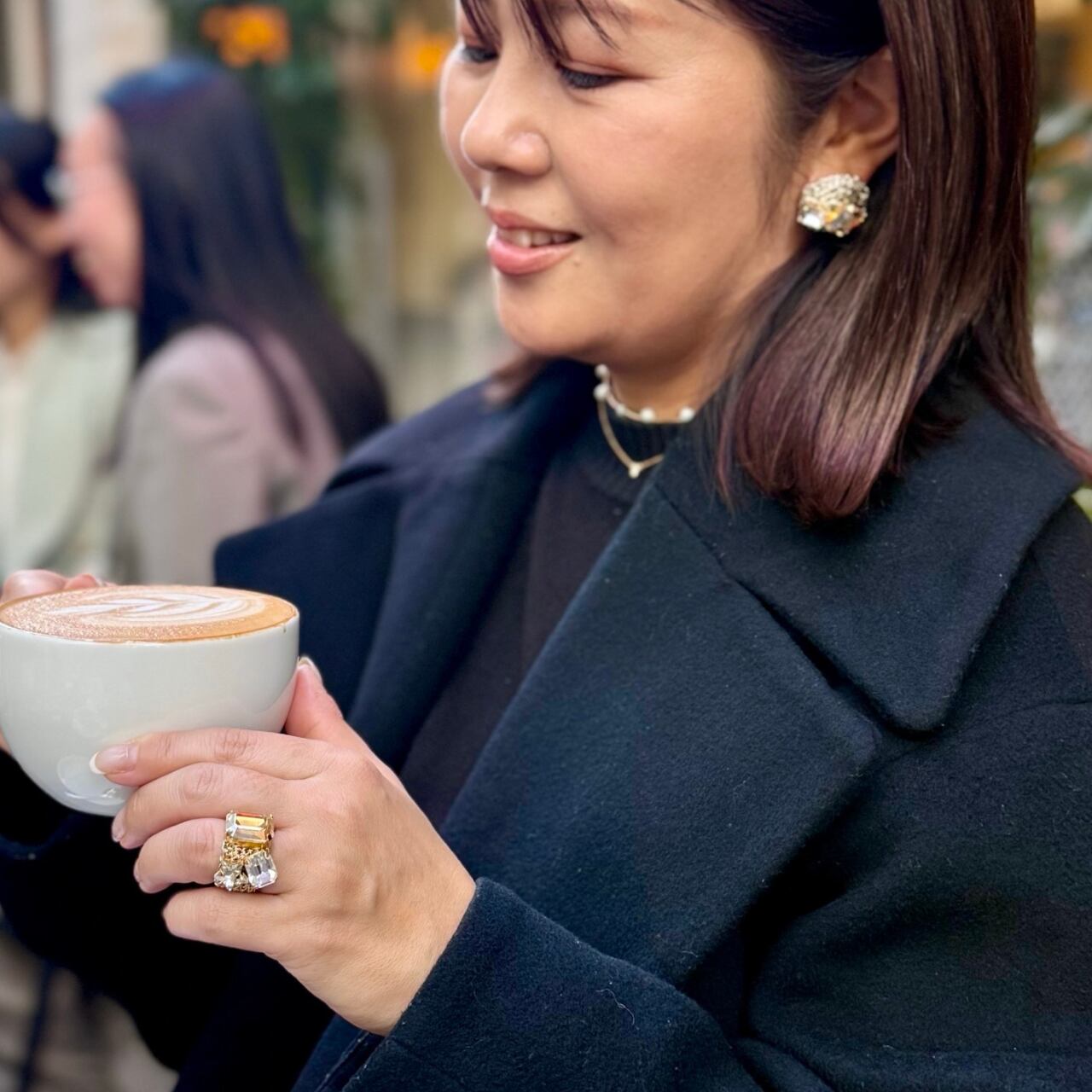 耳元には2つのビジューが綺麗に輝きます。